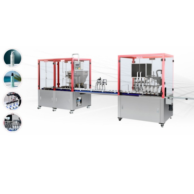 Машина интегрирует автоматическое заполнение, внутреннее размещение пробки, укрытие и разряд контейнеров. Это уменьшает ручное вмешательство и оптимизирует производственный процесс для повышения эффективности.